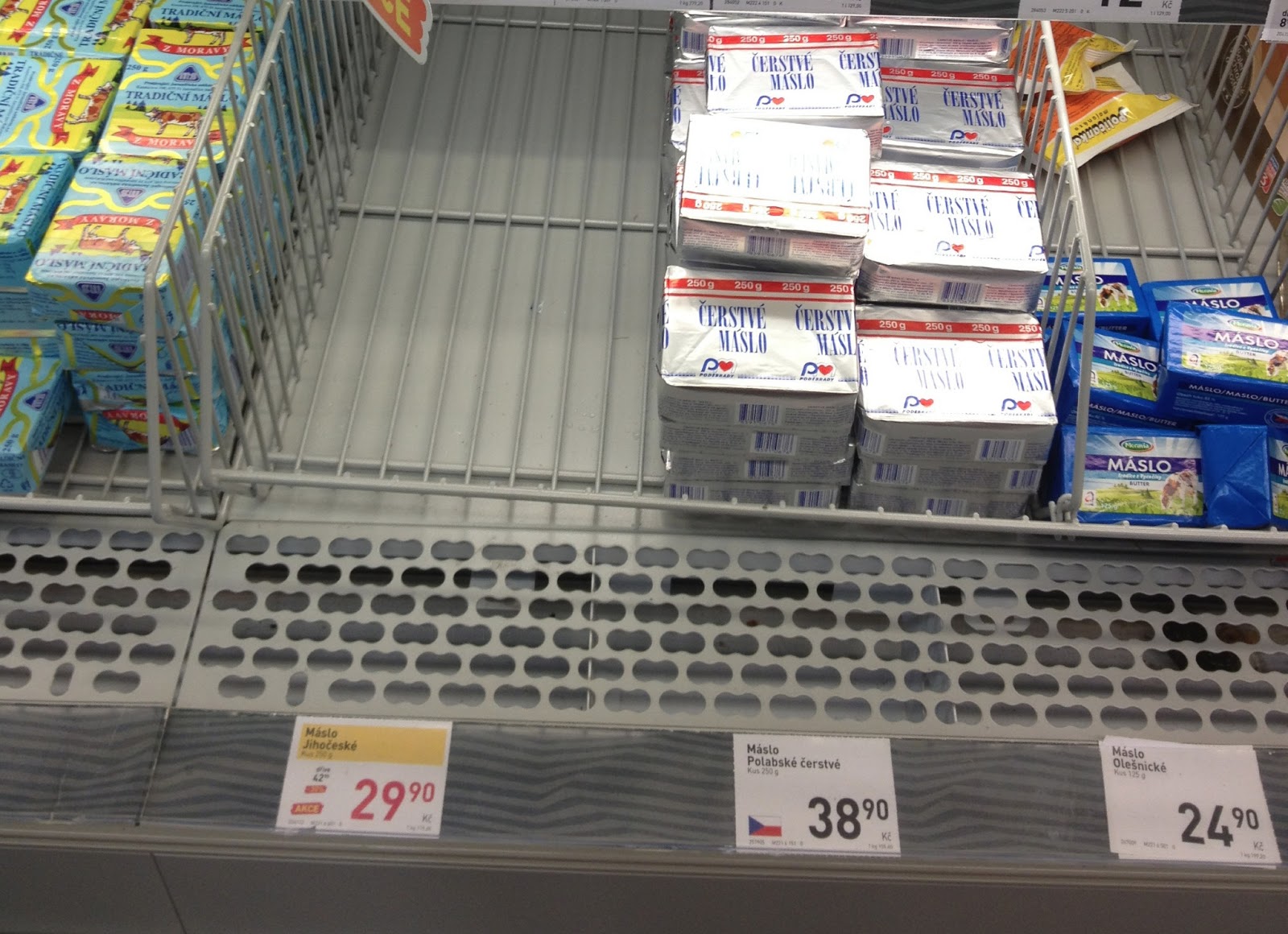 7. května jsem přišel nakoupit do Billy na Palmovce a stalo se přesně to, co se stát nemělo. Pokud si můžu jen trochu vybrat, kupuju Jihočeské máslo od Madety. Přijde mi, že na trhu má nejmenší podíl rostlinného tuku, který se na balení másla nikdy neuvádí. Je to znát na konzistenci a chuti. Proto pro mě ostatní másla jsou substitutní produkt špíš v závorce a s otazníkem.