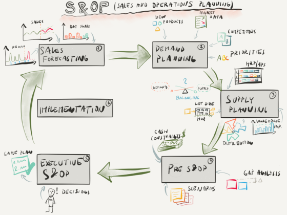 S&OP (Sales and Operations Planning) je taktický proces, který umožňuje managementu strategicky směřovat firmu podle aktuálního dění na trhu tak, aby maximalizovala přidanou hodnotu a vytvořila konkurenční výhodu. S&OP je proces, který dává dohromady všechny potřebné plány pro budoucí byznys firmy (jako jsou prodejní plán, marketingový, produktový, výrobní, nákupní, distribuční a samozřejmě i finanční).